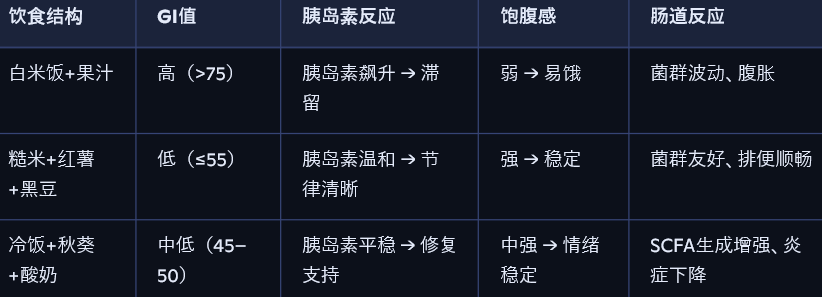 - 冷食或重新加热后食用 → 降低GI、提升肠道友好性;