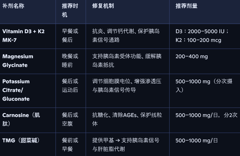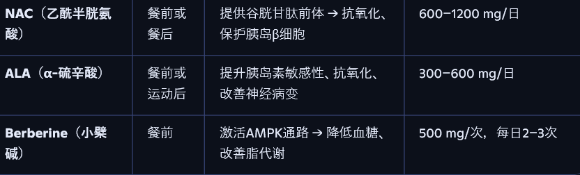 📋 可用于修复高血糖损伤的补剂清单(推荐摄入时机)