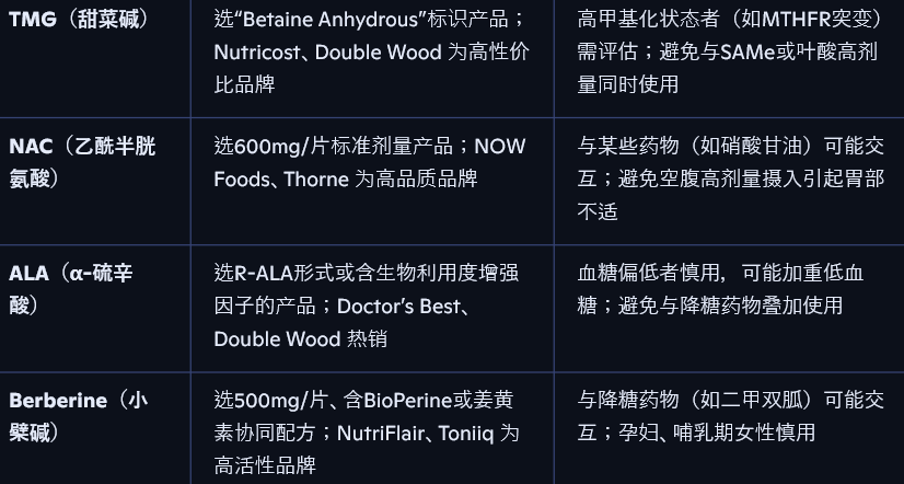 • Carnosine 与 TMG虽销量相对较低,但在抗糖化与甲基化支持方面具有独特优势,适合进阶代谢优化者。