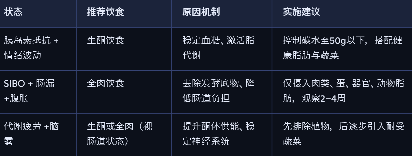 • 全肉饮食可作为“排除工具” → 观察症状变化、重建耐受性。