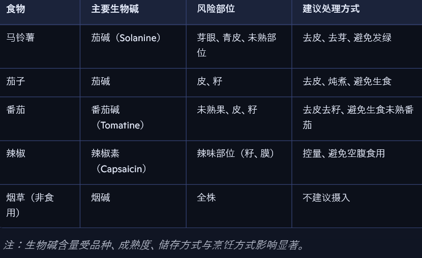 然而,它们含有一类天然的生物碱(如茄碱、辣椒素、烟碱),是植物用来抵御昆虫与动物啃食的“化学信号”。