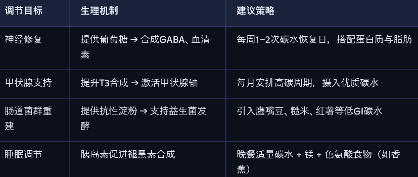 • ✅ 若有甲状腺疾病、神经系统问题或肠道疾病,应在专业指导下进行碳水周期化调整。