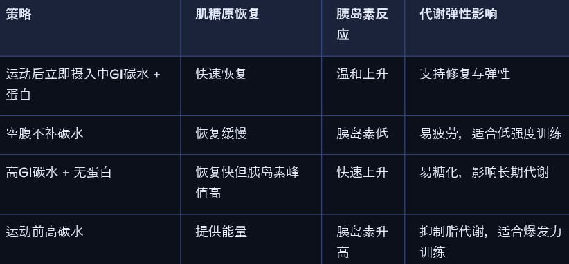 🧪 效果比较:不同碳水摄入策略对运动恢复的影响