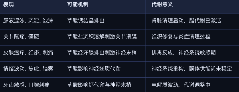 • ✅ 草酸排泄是阶段性现象,完成后身体将进入更高效的脂代谢状态。