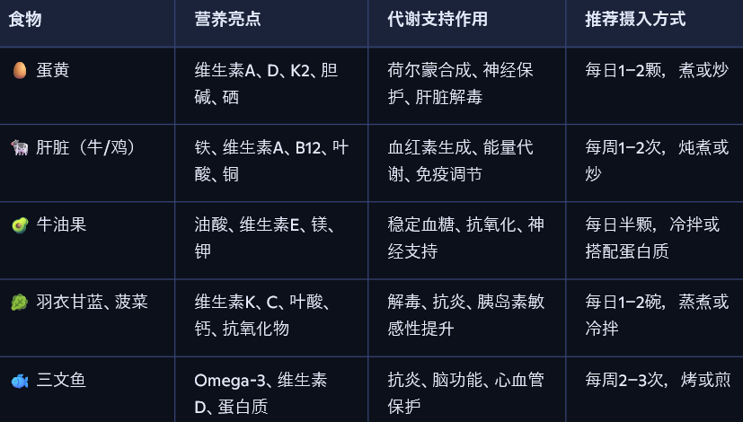 ——从蛋黄到绿叶菜,为代谢系统提供“修复燃料”