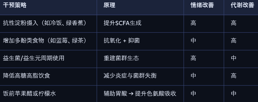 • ✅ 若有焦虑、抑郁或胰岛素阻抗,应优先构建“肠脑轴修复型饮食结构”;