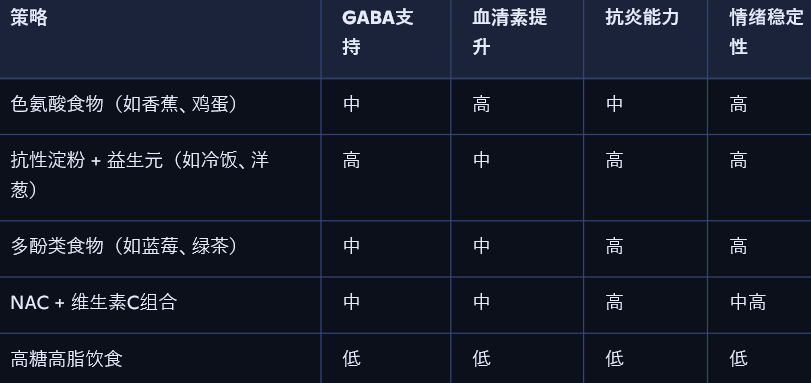 • ❌ 不建议长期高糖高脂饮食 → 易激活炎症与皮质醇升高;