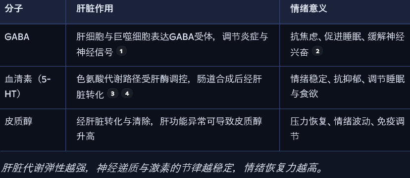 这些分子在肝脏中被合成、转化或清除,其代谢效率决定了情绪的恢复速度与稳定性。