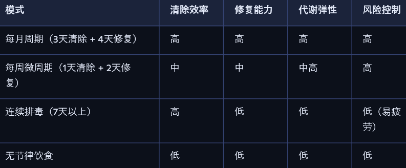 • ✅ 若有ALT/AST升高、脑雾、情绪波动或胰岛素阻抗,应优先采用“周期化排毒结构”;
