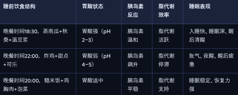 📌 例证:同一个人,不同睡前饮食结构下的代谢表现
