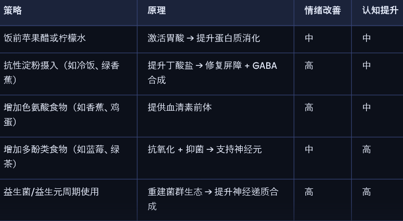 - ✅ 若有焦虑、抑郁或认知退化风险,应优先构建“神经修复型饮食结构”;
