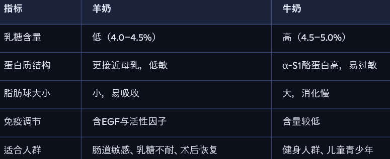 对于乳糖不耐受、肠道敏感或处于代谢重建期的人群,羊奶可能是更温和、更高效的选择。